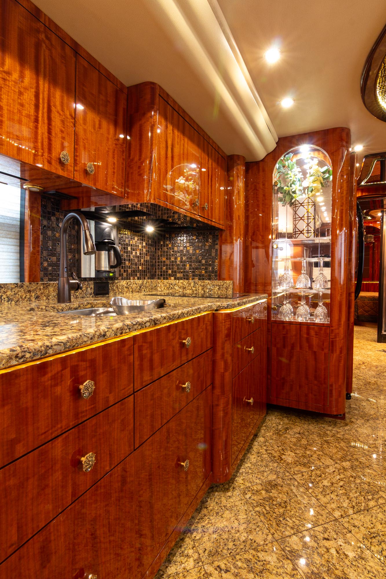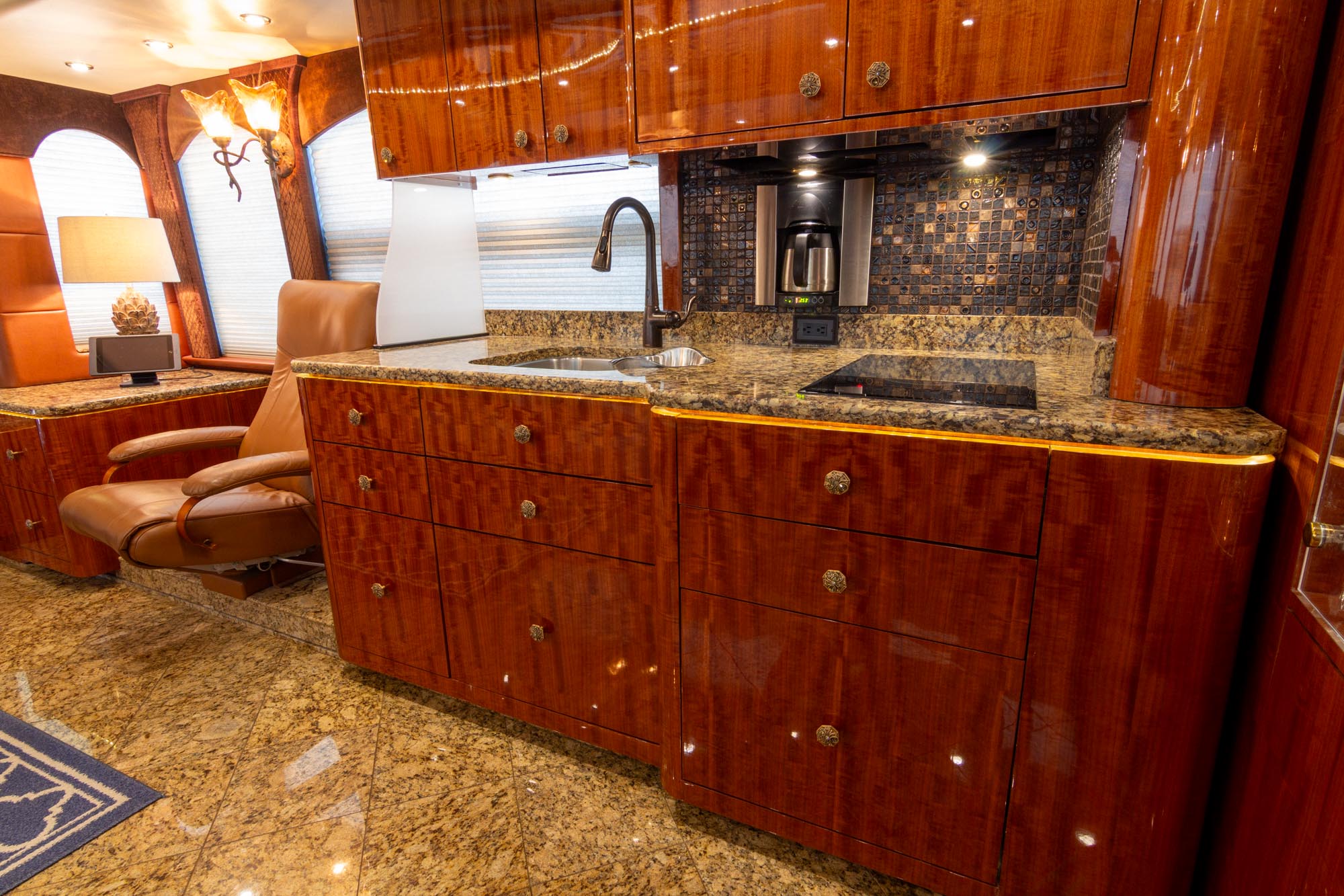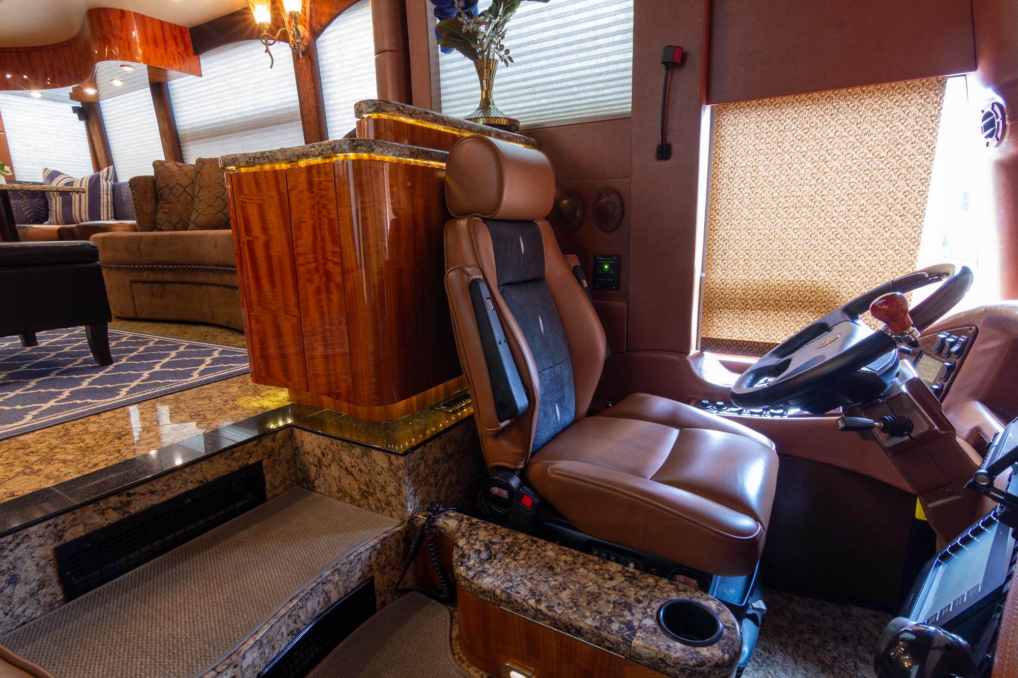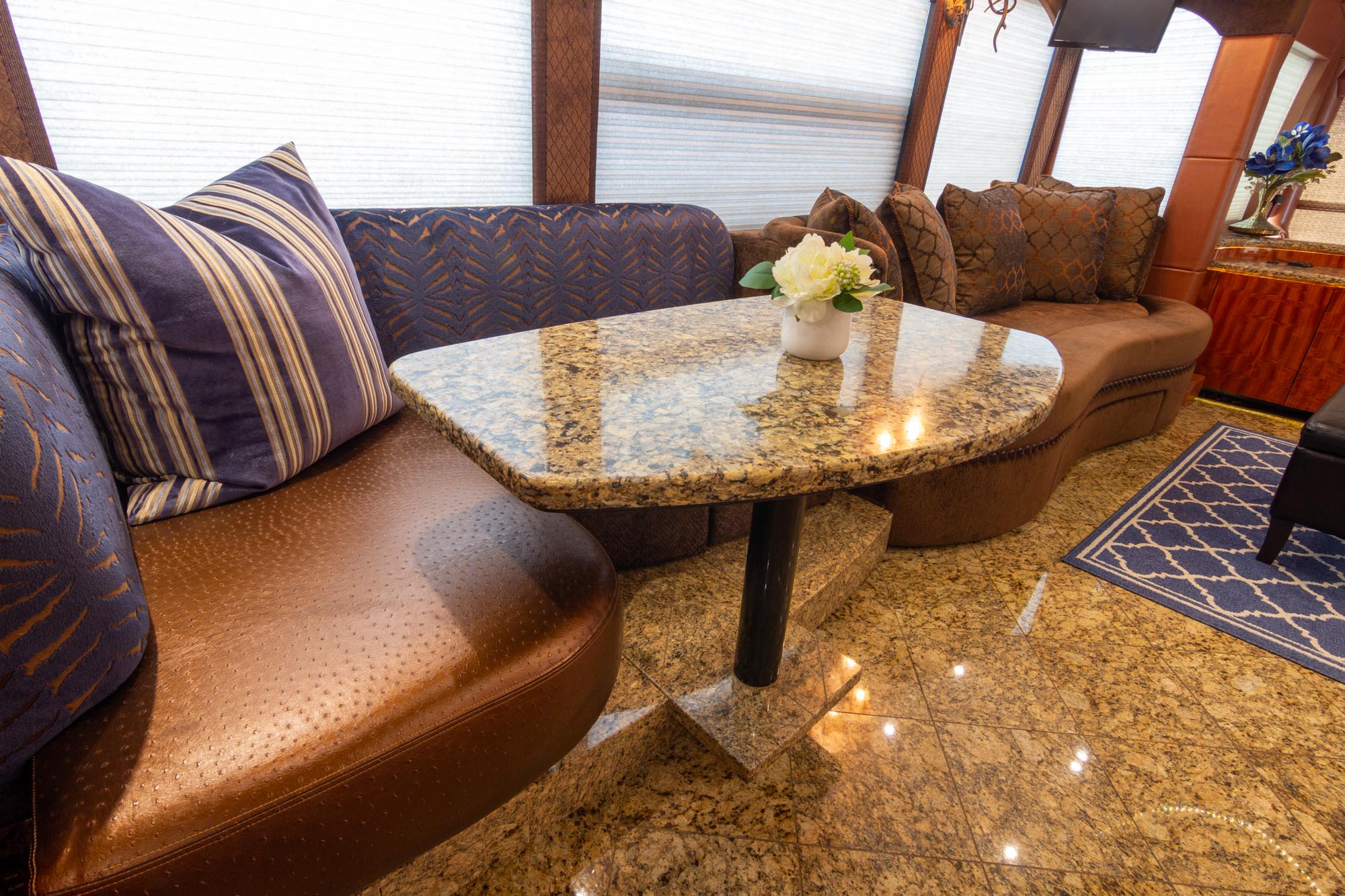 Granite flooring throughout the front of the coach,