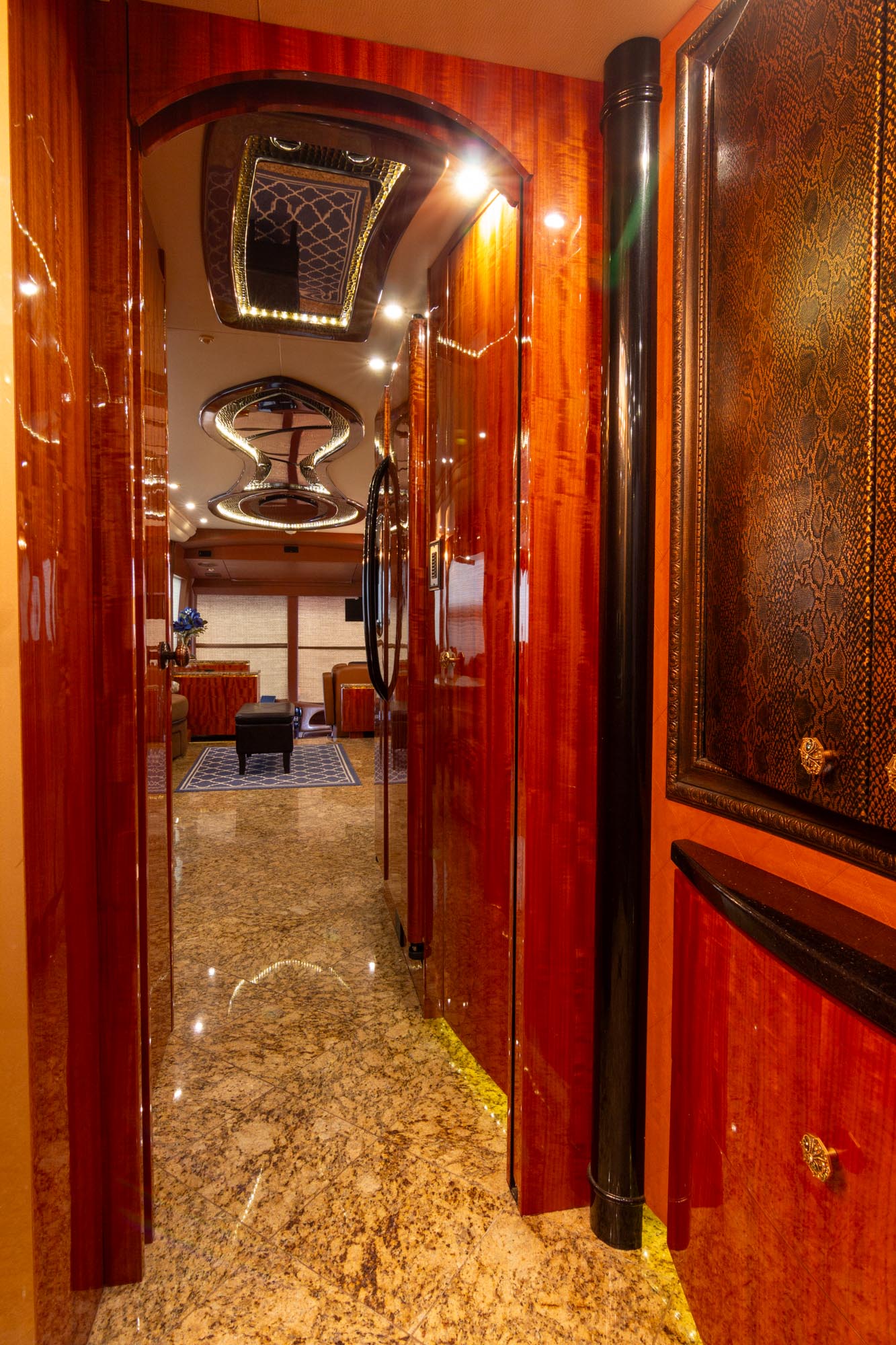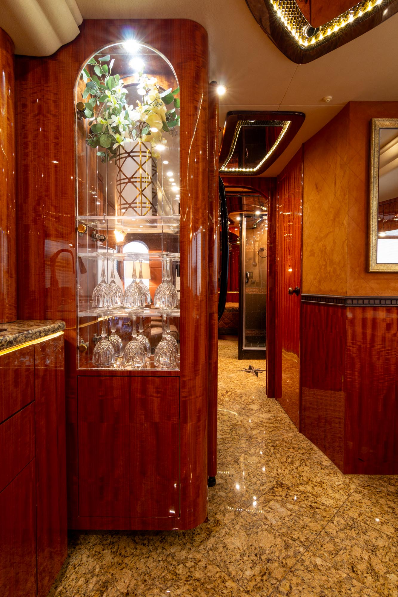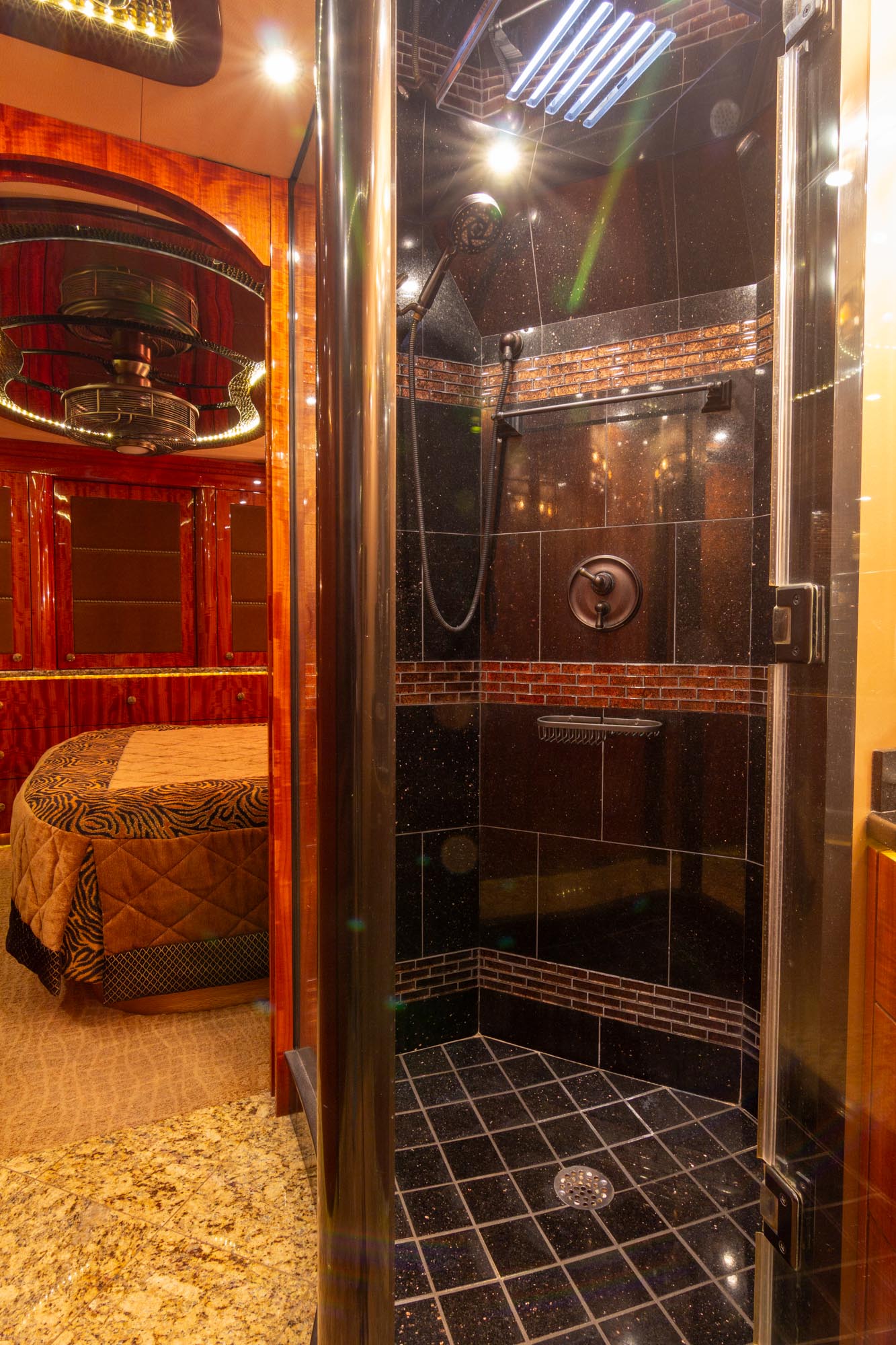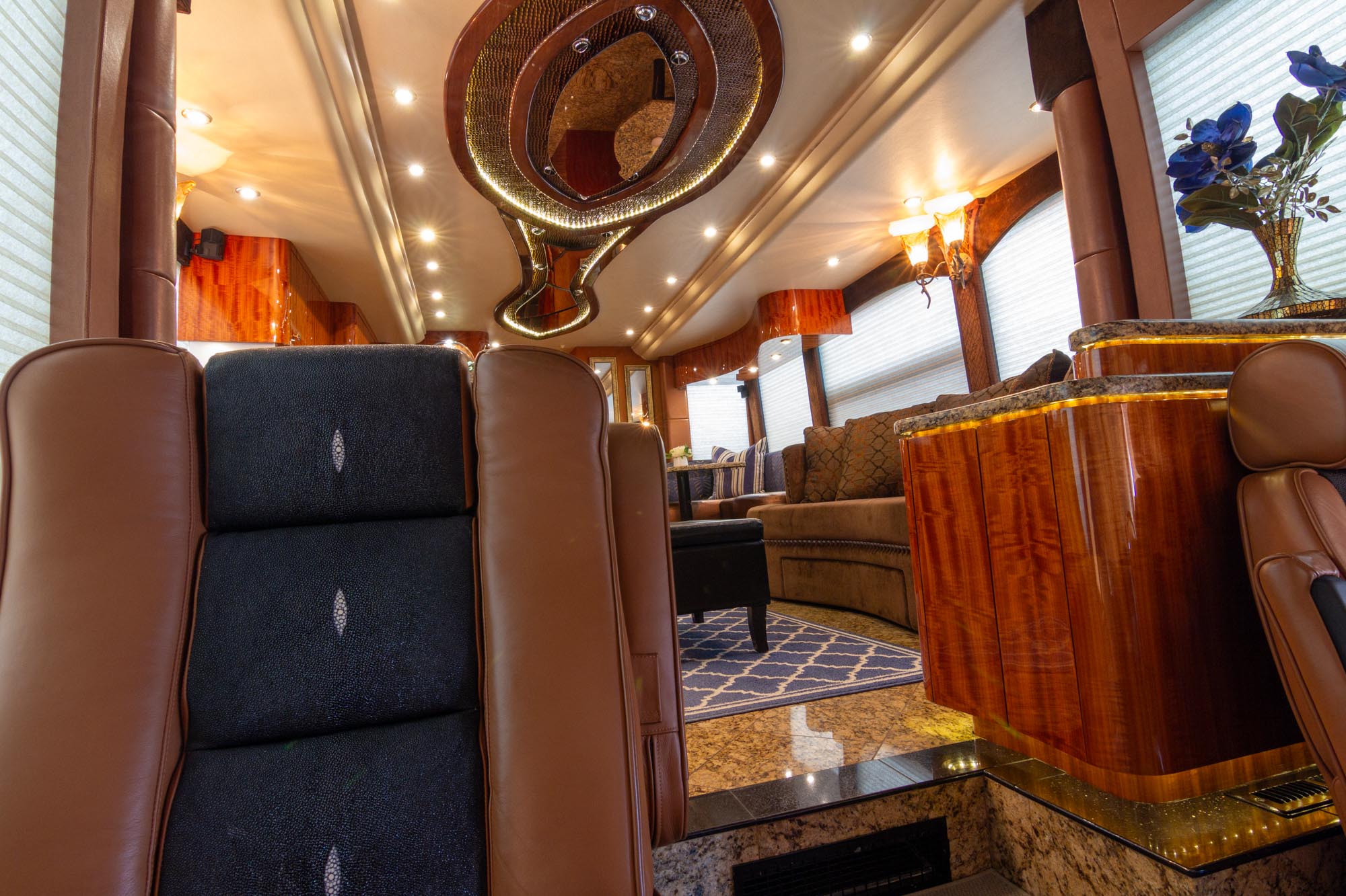 Granite flooring throughout the front of the coach,